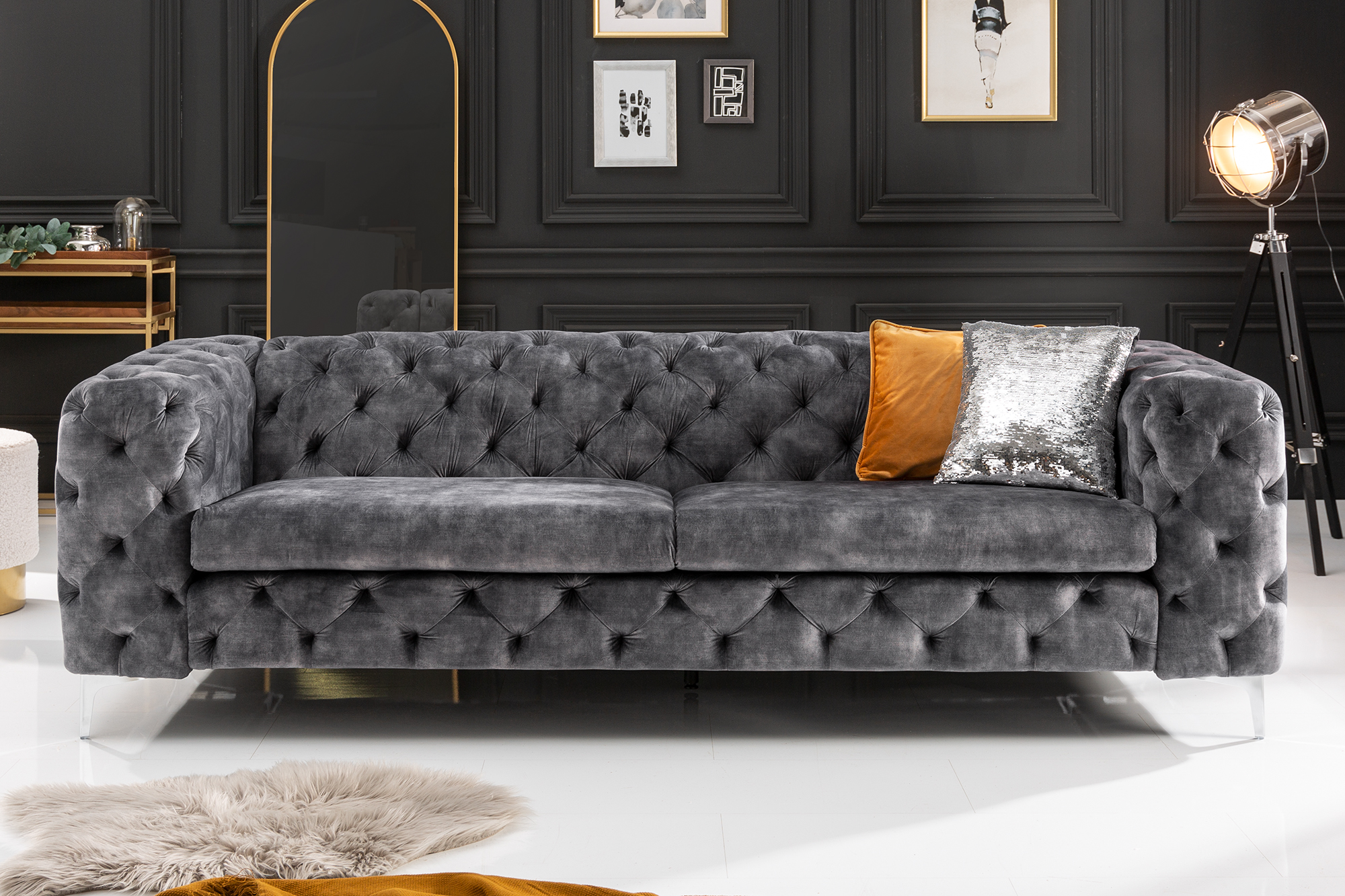 Diivan Modern Barock 240cm tumehall samet